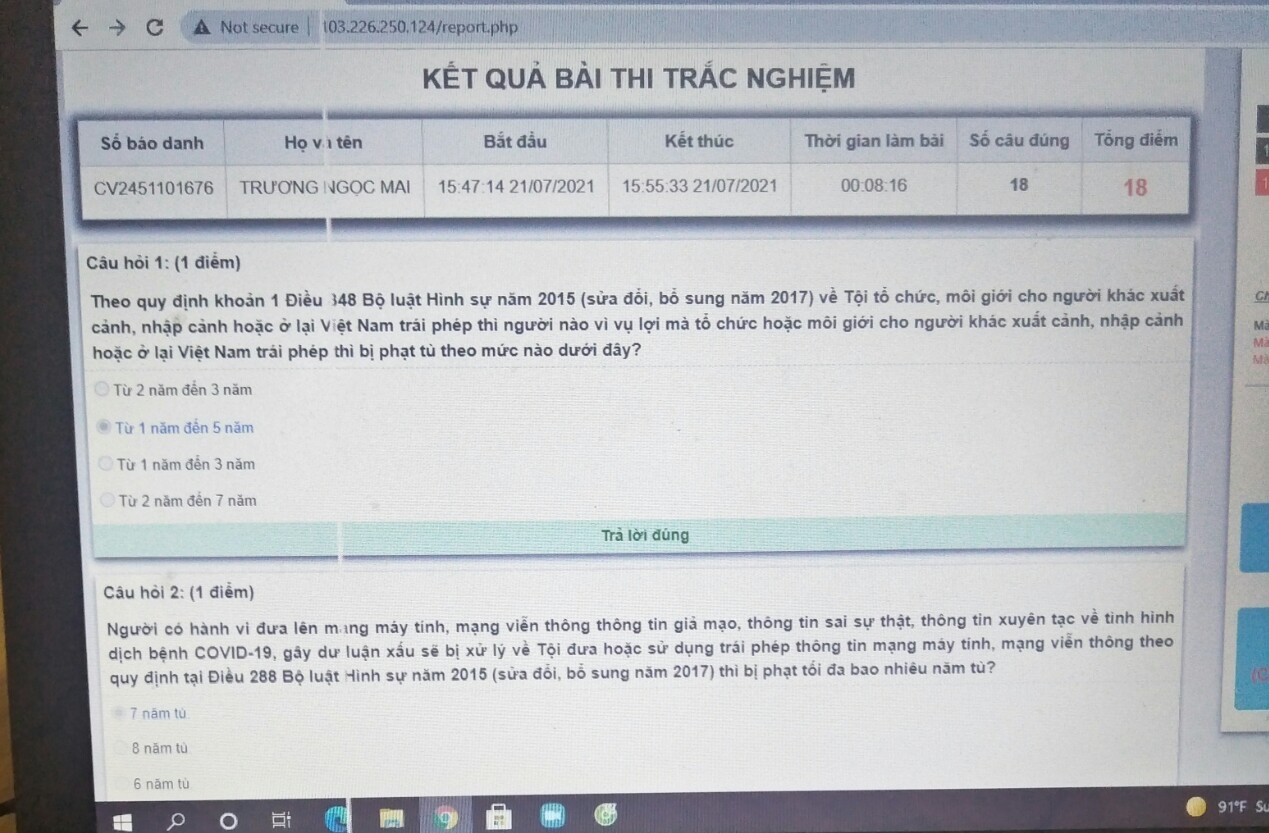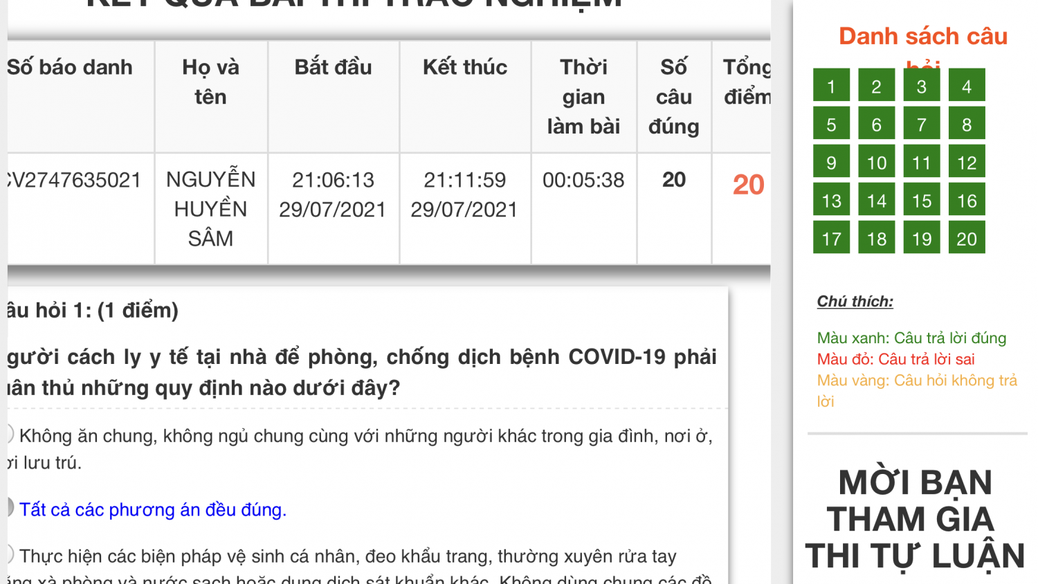 Tính đến ngày 30 tháng 7, đã có 23/23 CB, GV, NV và 100% học sinh tham gia thi. Chất lượng bài thi trắc nghiệm gửi về bằng báo cáo hình ảnh cho thấy hiểu biết của các đồng chí CB,GV,NV và HS trong nhà trường đối với công tác phòng, chống dịch bệnh là tương đối tốt.
