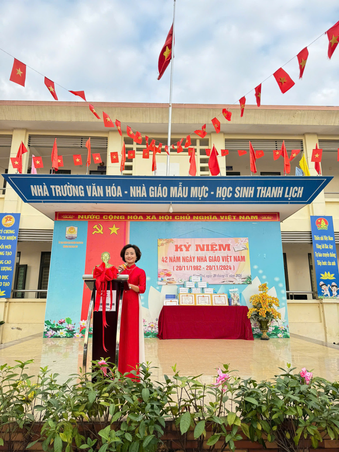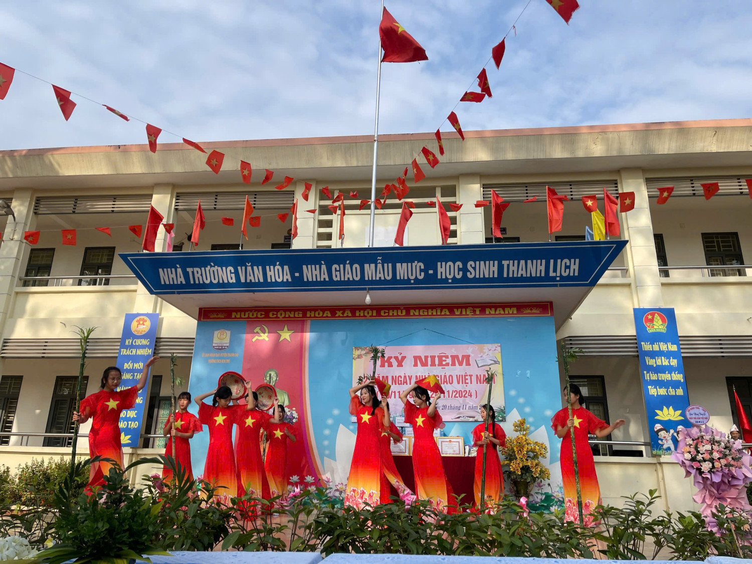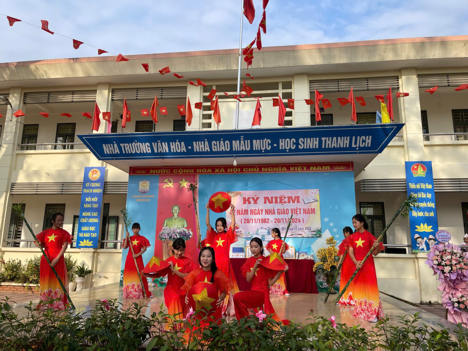 Chương trình chào mừng Ngày nhà giáo Việt Nam (20/11/1982 - 20/11/2024) đã diễn ra trong không khí trang trọng, xúc động và kết thúc trong niềm vui phấn khởi ,ấm áp nghĩa tình của các đại biểu cùng toàn thể cán bộ, giáo viên, nhân viên và các em học sinh nhà trường. Kính chúc quý thầy cô - những người lái đò thầm lặng, những người ươm mầm xanh cho đất nước - luôn có nhiều sức khỏe, giữ lửa đam mê và tình yêu nghề, tiếp tục đoàn kết, thi đua học tập, sáng tạo, đạt được nhiều thành tích hơn nữa trong công tác, hoàn thành xuất sắc các nhiệm vụ được giao để luôn xứng đáng với niềm tin tưởng của các cấp lãnh đạo và các bậc phụ huynh, các em học sinh.