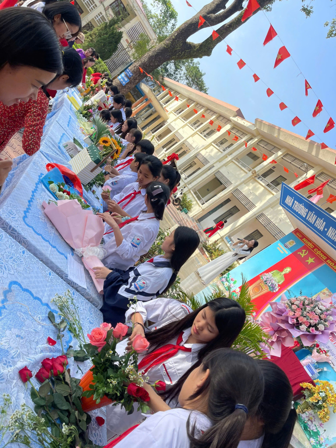 Đây cũng là dịp để nhà trường tri ân và bày tỏ niềm tự hào về những cống hiến thầm lặng của các thế hệ thầy cô giáo từng công tác tại nhà trường, đã góp phần tạo dựng nên một THCS Kim Thư với bề dày truyền thống và uy tín. Trong buổi lễ, Ban giám hiệu nhà trường đã trao tặng những bó hoa tươi thắm tri ân và các thầy cô giáo nguyên cán bộ quản lý, giáo viên của nhà trường - những người đã từng đứng trên bục giảng nơi đây, mang trong mình những kỷ niệm và sự gắn bó đặc biệt với mái trường này.